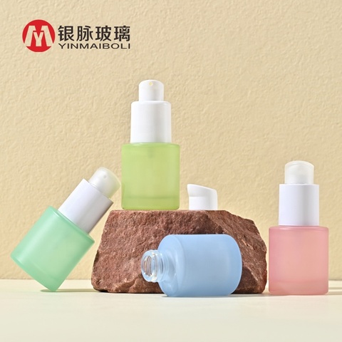Yinmai 플랫 어깨와 경사 바닥 사용자 정의 다채로운 30ml 스킨 케어 세럼 유리 화장품 점 적기 병